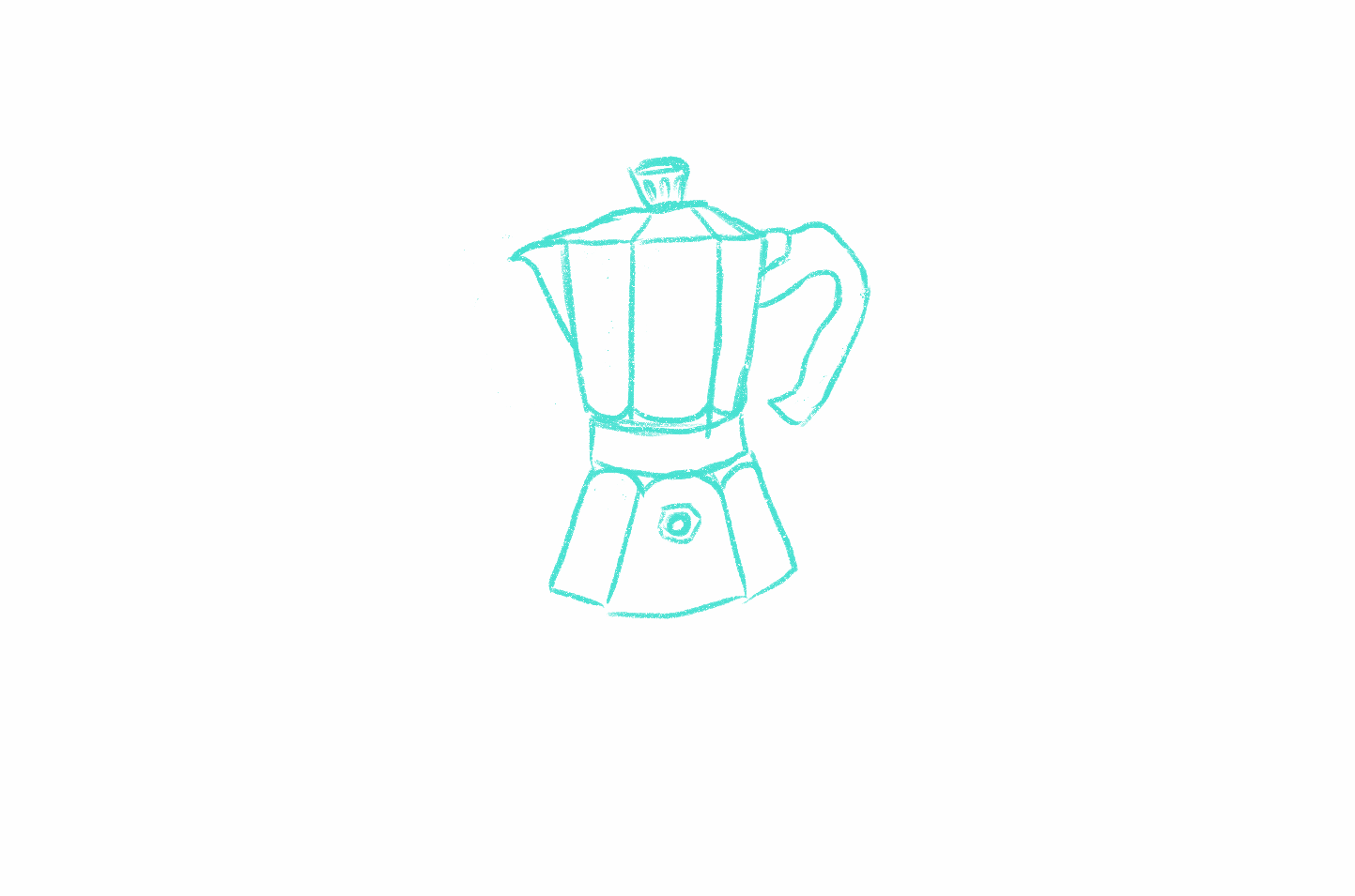 Later, I used Illustrator to draw the elements and animated them on Adobe Animate. While I was working on the animation, I thought of adding an extra illustration to show how the moka pot looks like from the inside while the coffee goes all the way up to be served.